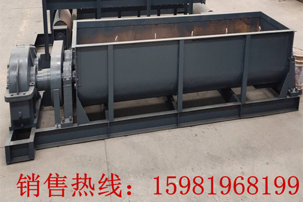 雙軸臥式攪拌機工作過程:干粉狀物料由給料機通過進料口定量均勻的進入槽體內,動力傳動機械帶動裝有葉片的螺旋形主軸轉動,通過對嚙合傳動齒輪帶動被動螺旋軸與主軸作等速相對轉動,使物料被攪動并推進至槽體加濕段,在物料被推進至加濕段后,加濕器自動對物料進行噴濕,在槽體攪拌段進行充分混合,當物料達到合適的濕度后由出料口卸出,進入下一道工序。